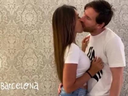 जगातील सर्वोत्तम फुटबॉलपटू लिओनेमल मेस्सी मैदानावर परतण्यासाठी प्रचंड उत्सुक आहे. त्यानं सरावालाही सुरुवात केली आहे. त्यामुळे त्याला पुन्हा मैदानावर खेळताना पाहण्यासाठी चाहते उत्सुक आहेत. पण, सध्या मेस्सी एका वेगळ्याच कारणामुळे चर्चेत आला आहे. मेस्सी हा तसा लाजाळू व्यक्ती आहे आणि सोशल मीडियावरही तो त्याच्या कुटुंबीयांचे फार फोटो पोस्ट करत नाही. पण, त्यानं एका म्युझिक व्हिडीओसाठी पत्नीसोबत लिपलॉप केलं आणि चाहत्यांनी त्याला ट्रोल केलं. हा व्हिडीओ मेस्सीचा मुलगा शूट करत होता आणि त्यामुळे चाहते आणखी भडकले.