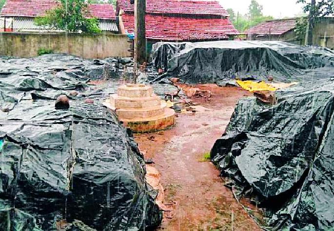 पावसाळ्याचे दिवस असल्याने मोकळ्या जागेत झाकून ठेवलेले धान भिजण्याची शक्यता आहे. विशेष म्हणजे धान झाकण्यासाठी पुरेशी ताडपत्री देण्यात आली नाही. केवळ १० ताडपत्र्या देण्यात आल्या. जि.प.सदस्य लता पुंघाटे यांनी या केंद्राला भेट देऊन पाहणी केली असता, ही भयानक स्थिती आढळून आली.