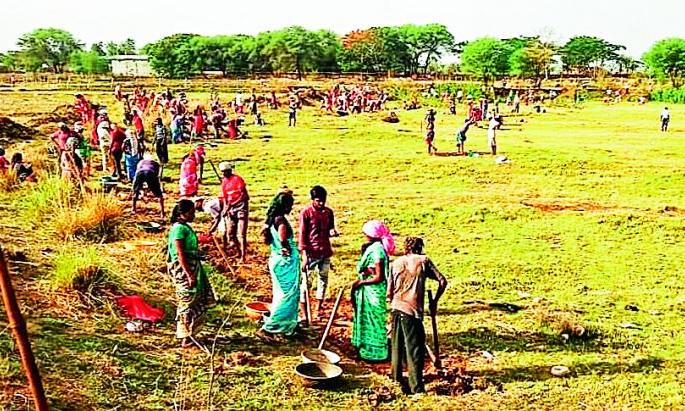 महेंद्र रामटेकेलाेकमत न्यूज नेटवर्कआरमोरी : कोरोनाच्या काळात घरीच बसून राहणाऱ्या व हाताला काम नसलेल्या मजुरांना प्रशासनाने रोहयोची कामे सुरू करून मोठा आधार दिला आहे. आरमोरी तालुक्यात रोजगार हमी योजनेचे काम ठिकठिकाणी सुरू करण्यात आले आहे. सोमवारी जिल्ह्यात सर्वाधिक म्हणजे आरमोरी तालुक्यात १६९ रोहयो कामावर ११७९३ मजुरांना रोजगार मिळाला आहे. तसेच चालू आर्थिक वर्षात एप्रिल व मे या दोन महिन्यांत ३३ हजार ३१७ मनुष्यदिन राेजगार निर्मिती झाली आहे.कोरोनाच्या दुसऱ्या लाटेचे संकट ओढवल्यानंतर लाॅकडाऊन करण्यात आले. त्यामुळे अनेकांच्या हाताला मिळणारे काम व रोजगार बुडाला. हातावर आणून पानावर खाणाऱ्या शेतकरी शेतमजुरांवर आर्थिक संकट ओढलेले होते. अशा आर्थिक संकटाचा सामना करणाऱ्या अनेक शेतमजूर कुटुंबांना रोहयोमुळे दिलासा मिळाला आहे. आरमोरी तालुक्यात प्रशासनाने जारी केलेल्या लाॅकडाऊनच्या नियमांचे पालन करून मास्कचा वापर, सॅनिटायझर, तापमान व ऑक्सिमीटर तपासणी इत्यादी सोयी-सुविधा कामाच्या ठिकाणी उपलब्ध करून देऊन व योग्य ती खबरदारी घेऊन आरमोरी तालुक्यात ग्रामपंचायत व यंत्रणा स्तरावरील कामे सुरू करण्यात आली.दिनांक ३१ मे रोजी आरमोरी तालुक्यात ग्रामपंचायत व यंत्रणा स्तरावर १६९ कामे सुरू करून गडचिरोली जिल्ह्यात सर्वाधिक ११ हजार ७९३ मजुरांना रोजगार हमीच्या कामावर रोजगार उपलब्ध करून देण्यात आला. यामध्ये ग्रामपंचायत स्तरावर मजगी, शेतबोडी, भातखाचार, मामा तलाव, नाला सरळीकरण, शोषखड्डे, घरकुल आदी १३५ अकुशल व वैयक्तिक स्वरूपाची कामे सुरू करण्यात आली असून १० हजार ३७५ मजुरांना रोजगार मिळाला आहे. तसेच यंत्रणा स्तरावर तालुका कृषी अधिकारी कार्यालयाअंतर्गत फळबाग लागवड व मजगी आदी प्रकारची २६ कामे सुरू करून त्यावर ९३९ मजुरांना काम देण्यात आले आहे. वन विभागाच्या मिश्र रोपवनाच्या ४ कामांवर २३ मजूर, जिल्हा परिषदेच्या सिंचाई विभागाच्या मामा तलाव व खोलीकरणाच्या ४ कामांवर ४५६ अशा ग्रामपंचायत व यंत्रणा स्तरावरील १६९ कामांवर ११ हजार ७९३ मजुरांना सोमवारी काम सुरू करून रोजगार उपलब्ध करून देण्यात आला. पावसाळा सुरू होईपर्यंत रोहयो कामे सुरू राहणार असून लाॅकडाऊनच्या काळात शासकीय नियमांचे काटेकोर पालन करून व योग्य खबरदारी घेऊन रोहयो कामे सुरू करण्यात आली आहेत.