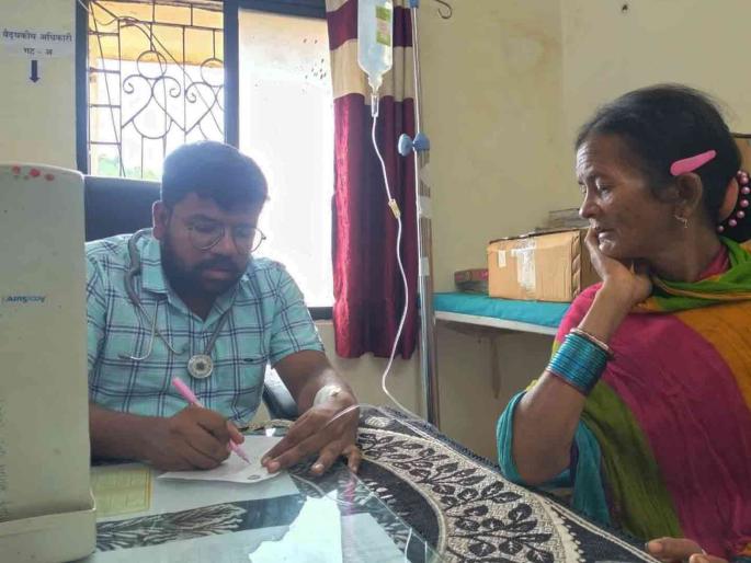 कधी झोळीतून, कधी नाल्यातून पायवाट...भामरागड तालुक्यात शेजारील छत्तीसगडचे काही रुग्ण झोळीतून तर कधी कावड करुन दवाखान्यात येत असतात. पक्के रस्ते नसल्याने काही ठिकाणी रुग्णवाहिका पोहोचत नाहीत तर पावसाळ्यात नाल्यातून जीवघेणा प्रवास करावा लागतो. हे नेहमीचेच चित्र आहे. भामरागड तालुक्यातील लाहेरी ग्रामपंचायत अंतर्गत बंगाडी गावात तापेने फणफणाऱ्या मुलीला पित्याने खांद्यावर बसवून नाल्यातून वाट काढत आरोग्य केंद्रात आणल्याचा व्हिडिओ दोन दिवसांपूर्वीच व्हायरल झाला होता. त्यावरुन एकीकडे आरोग्य सुविधांचा प्रश्न ऐरणीवर असताना डॉक्टरच्या सेवानिष्ठेचे दिलासादायक चित्र समोर आले आहे.