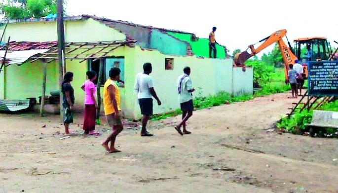 लाेकमत न्यूज नेटवर्कचामोर्शी : गावचे सरपंच होण्यापूर्वी अतिक्रमण करून बांधलेले स्वत:चे घर कारवाईच्या भीतीने स्वत: सरपंचानेच जेसीबी लावून भुईसपाट केले. ही घटना तालुक्यातील मुधोली चक नं.२ येथे घडली. तालुक्यात हा चर्चेचा विषय झाला आहे.मुधोली चक नं.२ येथील सरपंच अश्विनी रोशन कुमरे यांनी अनेक वर्षांपूर्वी अतिक्रमणाच्या जागेत घर बांधले होते. एका व्यक्तीने त्यांच्या अतिक्रमणाविरुद्ध ग्रामपंचायतमध्ये नमुना आठची मागणी केली होती. ही गोष्ट ग्रामसेवकाने सरपंच यांना कळवली. सरपंचाचे घर अतिक्रमणात असल्यास सदस्यत्वच रद्द होईल. परिणाम, सरपंचपदही गमवावे लागेल, ही बाब सरपंचाच्या लक्षात येताच शनिवार, ३१ जुलै रोजी सरपंचांनी आपले घर जेसीबी लावून पाडले.नियमानुसार अतिक्रमिकांना ग्रामपंचायत सदस्य म्हणून राहता येत नाही, त्यामुळे जिल्ह्यातील अनेकांवर जिल्हाधिकाऱ्यांनी कारवाई करत पदावरून हटविले. त्याच भीतीने सरपंच अश्विनी कुमरे यांनी आपले घर पाडले.