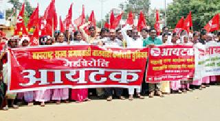 विविध मागण्यांचा समावेश : शेकडो कर्मचाऱ्यांची उपस्थिती; आंदोलन तीव्र करण्याचा इशारागडचिरोली : कामगार वर्गाच्या विविध मागण्यांसाठी आयटकच्या नेतृत्वात स्थानिक इंदिरा गांधी चौकात शुक्रवारी दुपारी १ वाजताच्या सुमारास निदर्शने करण्यात आली. या निदर्शनांमध्ये सरकारी व निमसरकारी विभागाचे कामगार, कर्मचारी, आशा, गटप्रवर्तक, शालेय पोषण आहार कर्मचारी यांच्या संघटनांनी सहभाग घेतला होता. रोजगार निर्मितीसाठी ठोस पावले उचलून बेरोजगार कमी करण्यात यावी, सर्व कामगारांना सार्वभौम सामाजिक सुरक्षा प्रदान करावी, असंघटीत क्षेत्रातील कामगार, अंगणवाडी सेविका, आशा, गटप्रवर्तक, शालेय पोषण आहार कर्मचारी, हातपंप देखभाल व दुरूस्ती कर्मचारी यांना किमान १८ हजार रूपये मासिक वेतन देण्यात यावे, ग्रॅज्युएटीची मात्र वाढविण्यात यावी, रेल्वे, सुरक्षा व अन्य महत्त्वपूर्ण क्षेत्रांमध्ये विदेशी गुंवणूक केली जाऊ नये आदी मागण्यांसाठी आयटकच्या नेतृत्वात आंदोलन करण्यात आले. या आंदोलनात जिल्हाभरातील हजारो कर्मचारी सहभागी झाले होते. आंदोलनाचे नेतृत्व आयटकचे जिल्हाध्यक्ष देवराव चवळे, जिल्हा सचिव विनोद झोडगे, कामगार नेते महेश कोपुलवार, खेत मजूर युनियनचे जिल्हाध्यक्ष अमोल मारकवार, प्रकाश खोब्रागडे, जगदिश मेश्राम, आशा व गट प्रवर्तक कर्मचारी युनियनच्या जिल्हा सचिव रजनी गेडाम, शालेय पोषण आहार कर्मचारी संघटनेचे जिल्हा सचिव कुंदा चलिलवार, राधा ठाकरे, जलिलखॉ पठाण आदींनी केले. (शहर प्रतिनिधी)गडचिरोली व मुलचेरातील परिचारिका संपावरपाच दिवसांचा आठवडा लागू करावा, सातवा वेतन आयोग १ जानेवारी पासून लागू करावा, केंद्राप्रमाणेच वाहतूक भत्ता, शैक्षणिक भत्ता, होस्टेल भत्ता राज्य कर्मचाऱ्यांना लागू करावा, महिला कर्मचाऱ्यांना दोन वर्षांची बाल संगोपण रजा मंजूर करावी, चतुर्थ व तृतीय श्रेणी कर्मचाऱ्यांची पदोन्नती नियमानुसार करावी आदी मागण्यांसाठी गडचिरोली व मुलचेरा रूग्णालयातील आरोग्य कर्मचाऱ्यांनी एक दिवसाचा संप केला. काही वेळ रूग्णालयासमोर निदर्शने केली. आंदोलनाचे नेतृत्व अध्यक्ष विस्तारी फेबुलवार, सचिव स्नेहल संतोषवार, विना शर्मा, सपना आर्इंचवार यांनी केले. मुलचेरा येथील आरोग्य कर्मचाऱ्यांनी मागण्यांचे निवेदन तहसीलदारांना देण्यात आले. यावेळी जी. बी. गेडाम, एस. पी. मडावी, के. टी. सोनुले, एस. ए. सडमेक, एन. व्ही. रॉय, एस. पी. चौधरी, एल. एम. नगराळे, ए. पी. चिरकुलवार, एल. के. बिरहा, आर. डी. चावरे, डी. ए. तुशावार, एस. एल. रामटेके, पी. जनगम, एस. एस. मालाकार, एस. गायकवाड आदी उपस्थित होते.
