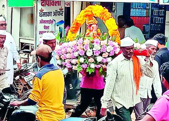 ढोल-ताशे व गुलाल उधळण्यास बगलदरवर्षी सार्वजनिक मंडळांचे गणपती ढोल-ताशे लावून वाजत-गाजत मंडपात आणले जातात. पण, यावेळी प्रशासनाचे नियम पाळत ढोल-ताशे आणि गुलाल उधळून नाचत बाप्पाची मिरवणूक काढण्यास बगल देण्यात आली. केवळ गणपती बाप्पाचा जयघोष केला जात होता. घरगुती स्थापनेसाठीही उत्साहाने विविध वाहनांमधून मूर्ती नेल्या जात होत्या.