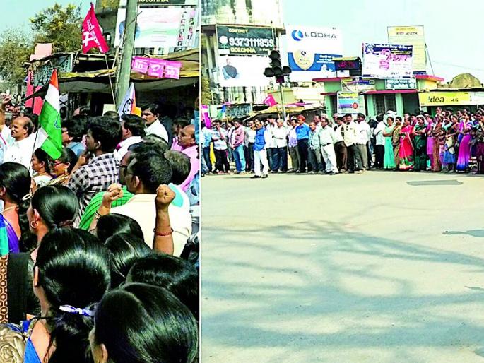 विविध राजकीय पक्षांच्या वतीने सकाळी इंदिरा गांधी चौकात धरणे व निषेध सभा झाली. हे आंदोलनकर्ते तेथून गेल्यानंतर दुपारी १२ च्या सुमारास बहुजन समाज पार्टीच्या कार्यकर्त्यांनी त्याच चौकात जमून सरकारविरोधी निदर्शने केली. काही वेळासाठी त्यांनी रास्ता रोकोही केला. त्यानंतर राष्ट्रपतींच्या नावे जिल्हाधिकाºयांना निवेदन देऊन भीमा कोरेगावच्या दंगलीतील आरोपींना अटक करण्याची मागणी केली. यावेळी जिल्हाध्यक्ष वामन राऊत, जिल्हा प्रभारी रमेश मडावी, प्रशांत दोनाडकर, ज्योती सोमनकर, कृष्णा वाघाडे, तुलराम दुधे, केशवराव सामृतवार, अरविंद गजभिये आदी पदाधिकारी प्रामुख्याने उपस्थित होते.