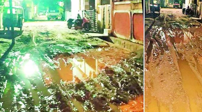 लॉकडाऊनमुळे या भागात भूमिगत गटार लाईनचे काम सुरू करण्यास संबंधित कंत्राटदाराने दिरंगाई केली. गटारलाईनसाठी खोदकाम केलेल्या रस्त्याची डागडुजी न केल्याने रस्त्यावर मोठमोठे खड्डे पडले आहेत. रस्त्यावर सर्वत्र चिखलमय स्थिती पाहावयास मिळते.