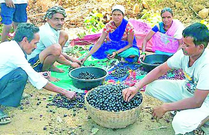 लोकमत न्यूज नेटवर्ककोरची : गडचिरोली जिल्ह्यात ७६ टक्के जंगल असून या जंगलात तसेच शेतशिवार व रस्त्याच्या आजुबाजूला जांभळाची अनेक झाडे आहेत. या झाडांचे जांभूळ आता निघत आहेत. कोरचीचे जांभूळ स्वादिष्ट असून ते विदर्भात प्रसिद्ध आहे. या जांभळाला नागपुरात मोठी मागणी असून कोरची येथून वाहनाद्वारे जांभूळ नागपूरला पोहोचत आहे.कोरचीमध्ये जांभूळ २५ ते ३० रुपये किलो तर गडचिरोलीत १०० रुपये किलो दराने विकले जात आहेत. नागपूरमध्ये किलोमागे २०० रुपये मोजावे लागत आहे. कृषी विज्ञान केंद्राच्या वतीने जांभूळ शेतीबाबत दरवर्षी शेतकऱ्यांमध्ये जनजागृती केली जाते. गतवर्षी गडचिरोली येथे जांभूळ महोत्सव घेण्यात आला. या महोत्सवात अनेक शेतकरी व नागरिकांनी हजेरी लावली होती. सदर महोत्सवात कृषी विज्ञान केंद्राच्या कृषी तज्ज्ञांनी जांभळाचे महत्त्व पटवून दिले होते.कोरची, कुरखेडा, आरमोरी तालुक्यात अहेरी उपविभागतही जांभळाचे अनेक झाडे आहेत. गडचिरोली जिल्हा हा आदिवासीबहुल असल्याने येथील आदिवासी नागरिक विविध प्रकारच्या रानमेवा संकलित करून त्यावर उपजीविका करतात. ग्रामीण व दुर्गम भागातील अनेक नागरिक सकाळच्या सुमारास जंगल परिसरात जाऊन जांभूळ व इतर प्रकारचे रानमेवा तसेच रानभाज्या संकलित करीत आहेत. आरमोरी, देसाईगंज, गडचिरोली येथील बाजारात गेल्या आठ-दहा दिवसांपासून रानभाज्या मोठ्या प्रमाणात विक्रीस आणल्या जात आहेत. या रानभाज्याला नागरिकांकडून मोठी मागणी आहे.गडचिरोली जिल्ह्यातील गावांच्या सभोवताल जंगल आहे. या जंगलात अनेक प्रकारच्या भाज्या मिळतात. तसेच काही झाडांच्या फुलांची भाजी केली जाते. बाजारात हळदफरी, पातूर, कळू भाजी, बहाव्याचा फूल, घोर, वराकल्या आदी रानभाज्या बाजारात दाखल झाल्या आहेत. सदर भाज्या खरेदी करण्यास शहरातील नागरिकांना प्रतिष्ठा आड येत होती. रानभाज्या वर्षातून एकदाच येतात. प्रत्येक रानभाजीचे स्वतंत्र चव आहे. विशेष म्हणजे, कोणतीही कीटकनाशकाची फवारणी नसल्याने या रानभाज्यांमध्ये पोषकतत्व आढळतात.आरोग्यासाठी जांभूळ लाभदायक, मधुमेहावर गुणकारीजांभूळ हा मूलत: दक्षिण आशिया व आग्नेय आशियात आढळणारा, जंबूल कुळातील सदाहरीत, सपुष्प वृक्ष आहे. जांभळाच्या झाडाला उन्हाळ्यात जांभळ्या रंगाची फळे येतात. ही फळे गोड-तुरट चवीची असतात. आकारामानाने ही फळे पेवंदी बोराएवढी असतात. जांभळाला सायझिजियम क्युमिनी असे शास्त्रीय नाव आहे. जांभूळ मधुमेह रोगावर गुणकारी आहे. जांभूळ रसाच्या तसेच बीच्या भूकटीला औषधी गुणधर्म आहे. जांभळाच्या बियांचे चूर्ण हे मधुमेहार औषध आहे. जांभूूळ रक्त शुद्ध करते. चेहºयावरचे मुरूम व पुटकुळ्या जांभळाच्या बिया उगारून लेप लावल्यास नष्ट होतात. जांभूळ हे