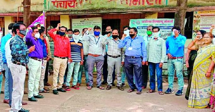 लोकमत न्यूज नेटवर्कगडचिरोली : विविध मागण्यांकडे शासनाचे लक्ष वेधण्यासाठी जिल्हाभरातील राज्य सरकारी कर्मचारी, जिल्हा परिषद कर्मचारी, निमसरकारी, चतुर्थ श्रेणी, शिक्षक, शिक्षकेत्तर कर्मचाऱ्यांनी तालुकास्तरावर निदर्शने देऊन शासनाचे लक्ष वेधले.अंशदायी पेन्शन योजना रद्द करून जुनी पेन्शन योजना लागू करावी. कंत्राट व मानधनावरील कर्मचाºयांना सेवेत नियमित करावे. महामंडळे, नगर पालिका, महानगर पालिका, शैक्षणिक संस्था, विविध प्रकल्पांमधील रिक्त पदे तत्काळ भरावी, कोविड योध्द्यांच्या सुरक्षिततेसाठी पुरेसे सुरक्षा उपकरणे उपलब्ध करून द्यावी. मार्च महिन्याचे कपात केलेले वेतन त्वरीत द्यावे. महागाई भत्ता गोठवू नये. सातव्या वेतन आयोगाचा दुसरा टप्पा एक वर्षासाठी पुढे ढकलण्याचा निर्णय त्वरीत रद्द करावा. मृत कर्मचाऱ्यांच्या वारसांना १० लाख रुपये सानुग्रह अनुदान द्यावे. आदी मागण्यांसाठी आंदोलन करण्यात आले. चामोर्शी पंचायत समिती समोर निदर्शने दिली. आंदोलनाचे नेतृत्व ग्रामसेवक युनियनचे माजी अध्यक्ष देवानंद फुलझेले, तालुका अध्यक्ष यादव मुळे, सचिव इंद्रावण बारसागडे, ज्ञानेश्वर भोगे, मदन काळबांधे, महेंद्र येलावार, अभय कार्सलावार, अमित दुधबळे, मनिषा खोबरे, स्वप्नील रायपुरे, दिगांबर पेंटीवार, अंकिता पन्नासे, शीतल आकरे यांनी केले. गडचिरोली, एटापल्ली, धानोरा, कोरची येथे सुध्दा आंदोलने करण्यात आली.