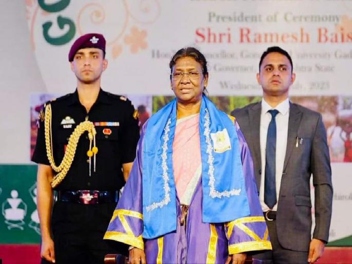 गडचिरोली : आदिवासींचे निसर्गाशी वर्षानुवर्षांचे नाते आहे. निसर्गाशी जुळवून घेत त्यांनी जीवन जगण्याची कला साध्य करत आपली संस्कृती व परंपरा जपली आहे. गोंडवाना विद्यापीठातील विविध उपक्रमांतून आदिवासी मुले- मुली शिक्षणाच्या प्रवाहात येत आहेत. शिक्षण हेच प्रगतीचे द्वार असून प्रत्येकाने जिद्दीने प्रयत्न करुन प्रगती करावी, असे प्रतिपादन राष्ट्रपती द्रौपदी मुर्मू यांनी केले.