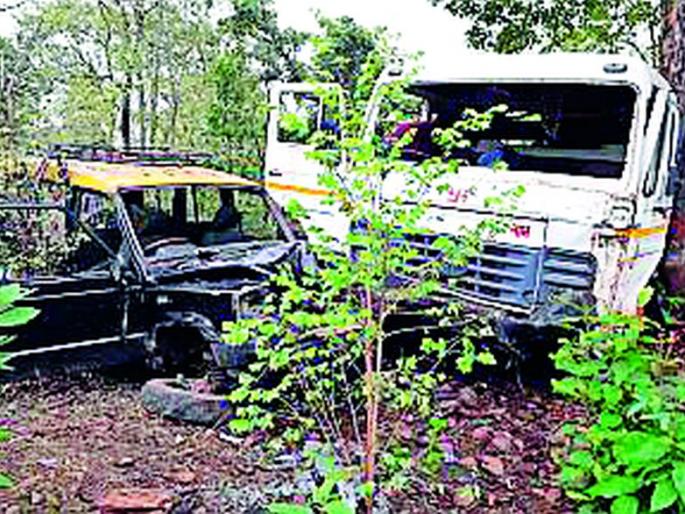 एमएच ३३ एम ५०१२ क्रमांकाचा काळीपिवळी वाहन सिरोंचा कडे जात होता. तेलंगनावरून छत्तीसगडकडे जाणाऱ्या ट्रकने काळीपिवळी वाहनाला धडक दिली. या अपघातात छल्लेवाडा येथील दुर्गेश अंकलू बोरले (३२), सरिता महेश चालूरकर (२७), रा. खांदला, मनिषा सदानंद आदे (३०) रा.व्यंकटापूर, पोस्का सानते (३४) रा. महादेवपूर, सुमन तिरूपती रामटेके (३४) रा. बोरमपल्ली, प्रणय तिरूपती रामटेके, श्रीनिवास नागेश निमलवार रा. नागेपल्ली हे प्रवाशी किरकोळ जखमी झाले. त्यांच्यावर जिमलगट्टा येथील प्राथमिक आरोग्य केंद्रात उपचार करण्यात आले. उपचारानंतर त्यांची सुटी करण्यात आली.