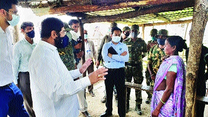 गडचिरोली : महाराष्ट्र-छत्तीसगड सीमेनजीकच्या नक्षलग्रस्त संवेदनशील परिसराला गडचिरोली जिल्ह्याचे पालकमंत्रीपदाची एकनाथ शिंदे यांनी रविवारी भेट देऊन तेथील परिस्थितीचा आढावा घेतला. ते दोन दिवसांच्या गडचिरोली जिल्ह्याच्या दौऱ्यावर आले आहेत. प्रथमच सरकारचा कोणी मंत्री संवाद साधण्यासाठी या परिसरात आल्यामुळे येथील आदिवासी बांधवांनीही आनंद व्यक्त केला. विशेष म्हणजे नक्षलवाद्यांचा शहीद सप्ताह सुरू असतानाही एकनाथ शिंदे यांनी धोका पत्करून या संवेदनशील परिसराचा दौरा केला.