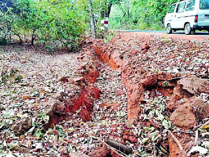 लोकमत न्यूज नेटवर्कवैरागड : कुरखेडा तालुक्याच्या शिरपूर ते वारसा गावाला जोडणाऱ्या नवीन डांबरी रस्त्याच्या कडा भरण्यासाठी संबंधित कंत्राटदाराने रस्त्याच्या बाजूचा मुरूम खोदला. परिणामी रस्त्याच्या बाजूलाच नालीसारखे मोठमोठे खड्डे निर्माण झाले. हे खड्डे धोकादायक ठरणार असून मोठ्या अपघाताची शक्यता नाकारता येत नाही.शिरपूरपासून पाच-सहा किमी अंतराच्या रस्त्याच्या डांबरीकरणाचे काम कंत्राटदारामार्फत करण्यात आले. रस्त्याचे काम पूर्ण झाल्यानंतर रस्त्याच्या कडा भरण्यासाठी संबंधित कंत्राटदाराने जेसीबी लावून रस्त्याच्या बाजूचा मुरूम खोदला. सदर ठिकाणचा मुरूम तयार झालेल्या नवीन रस्त्याच्या कडा भरण्यासाठी वापरण्यात आला. मुरूम खोदल्यामुळे मोठमोठे खड्डे तयार झाले. या ठिकाणी एखाद्या वाहनाला अपघात झाल्यास सदर मोठ्या खड्ड्यातून वाहन निघणे कठीण होणार आहे. रस्त्याच्या कडा बुजविण्यासाठी त्याच ठिकाणचा मुरूम खोदण्याची तरतूद असली तरी चुकीच्या पद्धतीने मुरूम खोदल्यामुळे आता अपघाताची शक्यता निर्माण झाली आहे. याची चौकशी करून कारवाई करावी, अशी मागणी शिरपूर परिसरातील नागरिकांनी केली आहे.वृक्षांची झाली कत्तलजेसीबी लावून रस्त्याच्या लगतचा मुरूम खोदण्यात आल्याने या कामादरम्यान अनेक वृक्षांची कृत्रिमरित्या कत्तल झाली. नालीसारखे मोठे खड्डे पडले. आता जंगलात चरायला जाणाºया गुरांना या खड्ड्यांपासून धोका होणार आहे.