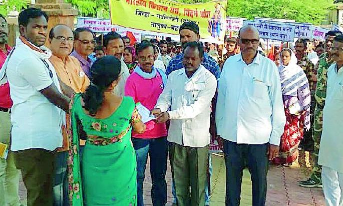 भारतीय किसान संघ विदर्भ प्रांताच्या वतीने सोमवारी अपर जिल्हाधिकारी कार्यालयावर मोर्चा काढण्यात आला. या मोर्चात अहेरी उपविभागातील शेकडो नागरिक सहभागी झाले होते.