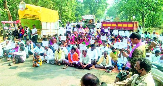अधिकाऱ्यांची आंदाेलनस्थळी भेटआंदाेलनादरम्यान नायब तहसीलदार अंताराम मडावी, आविमचे व्यवस्थापक बावणे, पुराडाचे आरएफओ डिगाेडे व महावितरण कंपनीच्या अभियंत्यांनी आंदाेलनस्थळी भेट दिली व मागण्या मान्य करण्याचे आश्वासन दिले. त्यामुळे आंदाेलन स्थगित करण्यात आले. आरएफओंनी ४१ अतिक्रमणधारकांवर काेर्ट केस केली आहे, असे सांगितले.