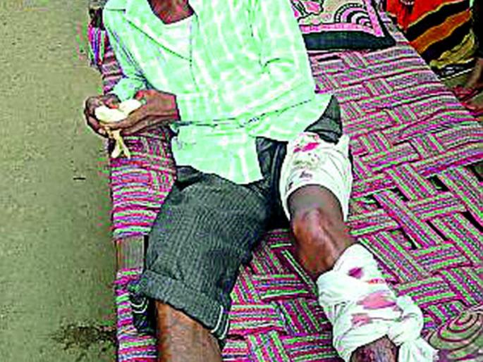 लाेकमत न्यूज नेटवर्कगडचिराेली : आपली गुरे चारण्यासाठी जंगलात गेेलेल्या शेतकऱ्यावर एका पट्टेदार वाघाने झडप घातली; पण सोबत असणाऱ्या इतर शेतकऱ्यांनी वाघाच्या तावडीतून त्या शेतकऱ्याला सोडवत जीवनदान मिळवून दिले. हा थरार मंगळवारी दुपारी २.३० वाजताच्या सुमारास गडचिरोलीपासून १२ किलोमीटरवर असलेल्या मारकबोडीजवळच्या जंगलात घडला.बाबूराव ताेदूरवार (६०) रा.मारकबाेडी असे जखमी शेतकऱ्याचे नाव आहे. प्राप्त माहितीनुसार, बाबूराव यांच्यासह गावातील इतर पाच शेतकरी गावाजवळ असलेल्या वनविकास महामंडळाच्या (एफडीसीएम) जंगलात बैलांना चारण्यासाठी नेले हाेते. बैलांना चरण्यासाठी साेडून सहाही जण एका झुडुपाजवळ सावलीत बसले हाेते. काही वेळानंतर बाबूराव हे उठून जाऊ लागले. त्याचवेळी दबा धरून बसलेल्या वाघाने बाबूराव यांच्यावर झडप घातली. बाबूराव उभे झाले असल्याने त्यांची डाव्या पायाची मांडी वाघाच्या जबड्यात सापडली. वाघाने हल्ला केल्याचे पाहताच जवळच असलेल्या इतर शेतकऱ्यांनी आरडाओरड करत वाघावर काठ्या उगारल्या. त्यामुळे घाबरून वाघाने बाबूराव त्यांना सोडून जंगलाकडे पळ काढला.या हल्ल्यात बाबूराव यांच्या मांडीला वाघाच्या दातांचे व्रण पडून जखमा झाल्या. त्यांना उपचारासाठी जिल्हा सामान्य रुग्णालयात दाखल करण्यात आले आहे. गडचिरोलीपासून अवघ्या १२ किलोमीटरवर ही घटना घडल्याने शेतकऱ्यांमध्ये पुन्हा दहशत पसरली आहे.