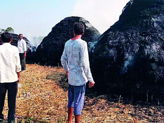 विलास शिम्पी यांनी धानाची कापणी केल्यानंतर पुंजने लावले होते. जवळपास एक हजार धानाचे भारे होते. शुक्रवारी दुपारी १ वाजताच्या सुमारास पुंजण्याला आग लागली. बाजूच्या शेतात काम करीत असलेल्या शेतकऱ्यांच्या ही बाब लक्षात येताच पुंजण्याकडे धाव घेऊन आग विझविण्याचा प्रयत्न केला. मात्र आगीने रौद्ररूप धारण केले असल्याने आग आटोक्यात आले नाही. तिनही पुंजने जळून खाक झाले. याबाबतची माहिती तलाठी ए.एम.टेंभूर्णे यांना देण्यात आली. त्यांनी पंचनामा केला. यामध्ये देवनाथ शिम्पी यांचे ४० हजार रूपयांचे तर विलास शिम्पी यांचे ८० हजार रूपयांचे नुकसान झाले आहे. शासनाने आर्थिक मदत द्यावी, अशी मागणी होत आहे.