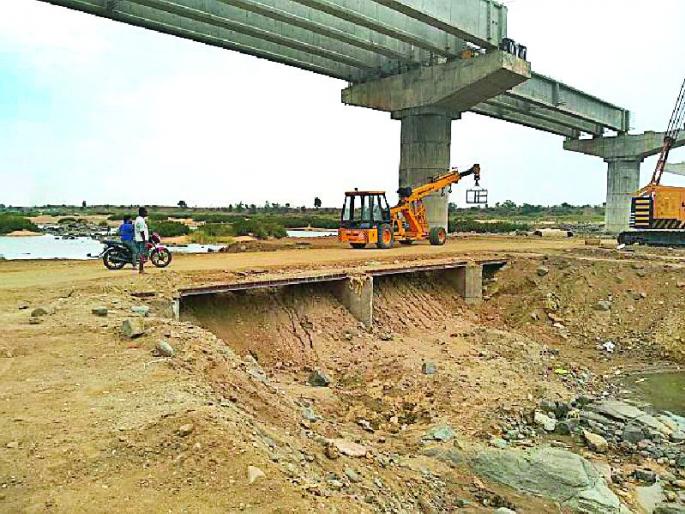 तेलंगणा व अहेरीला जोडण्यासाठी प्राणहिता नदी घाटावर मागील दोन वर्षांपासून आंतरराज्यीय पुलाचे काम सुरू आहे. पुलावर काम करणाऱ्या ट्रक व इतर साधनांना ये-जा करता यावी, यासाठी कंत्राटदाराने पुलाच्या खालून लहान पूल तयार केला होता. या लहान पुलाच्या खालून पाणी जात होते. मात्र तीन दिवसांपूर्वी कंत्राटदाराने लहान पूल पूर्णपणे बुजवून नदीचा प्रवाह पूर्णपणे ंबंद केला आहे.