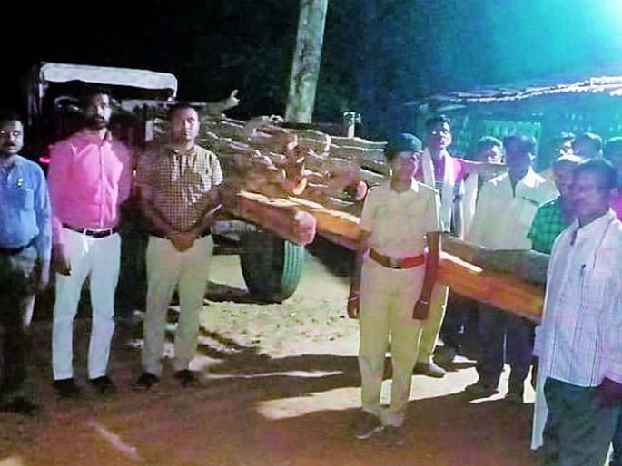 लाेकमत न्यूज नेटवर्कआलापल्ली/पेरमिली : आलापल्ली वन विभागांतर्गत येत असलेल्या पिरमिली वनपरिक्षेत्रातील कक्ष क्रमांक ९२ मध्ये अवैधरीत्या वाहतूक होत असलेली सागवान लाकडे वन विभागाच्या गस्ती पथकाने रंगेहाथ पकडले. यात ३३ नग लाकडांसह ट्रॅक्टर व ट्रॉली जप्त करण्यात आली. एकूण जप्त मुद्देमालाची किंमत १० लाखाच्या घरात आहे.प्राप्त माहितीनुसार, दिनांक २६ च्या सायंकाळी ७.१५ वाजता गस्तीवर असलेल्या पिरमिली वनपरिक्षेत्रातील अधिकारी व त्यांच्या अधिनस्त क्षेत्रीय कर्मचाऱ्यांना अवैधरीत्या लाकूड भरून वाहतूक करीत असलेले ट्रॅक्टर आढळले. या प्रकरणात आरोपी प्रभाकर बोंदय्या जंगीडवार (४५ वर्षे) रा. पिरमिली व रोशन संपत गावडे (२५ वर्ष) रा. पिरमिली यांना ताब्यात घेण्यात आले.ही कारवाई गडचिरोली वनवृत्ताचे वनसंरक्षक डॉ. किशोर मानकर व आलापल्ली वन विभागाचे उपवनसंरक्षक राहुलसिंग टोलिया यांच्या मार्गदर्शनात नीतेश शंकर देवगडे, उपविभागीय वनाधिकारी आलापल्ली, योगेश वसंत शेरेकर वनपरिक्षेत्र अधिकारी पिरमिली, क्षेत्र सहायक मंगरू कोलू तिम्मा, केशव सावजी तुलावी, वसंत चिन्नाजी पागे, आजमखान महेबूबखान पठाण, नियत वनरक्षक देवीदास देवराव मेश्राम, रवींद्र घाटूजी येरेवार, अविनाश कोडापे, विनोद आत्राम, प्रेमानंद कोकोडे, महेश जीवन मेश्राम, सुरेद्र बंदुके, नजीमखान पठाण, वनमजूर चरणदास गर्गम, शंकर आतकुलवार, वाहन चालक सचिन डांगरे यांनी पार पाडली. या कारवाईमुळे वनतस्करांवर वचक बसला आहे.