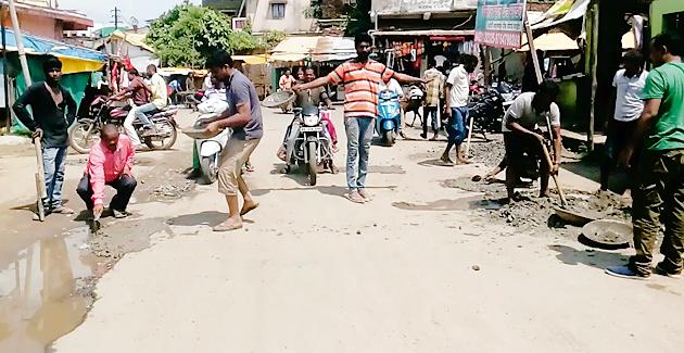 गणेश मंडळाने बुजविले खड्डे