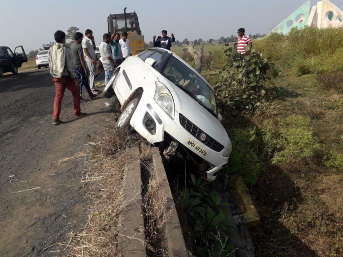 आॅनलाईन लोकमतगडचिरोली:गडचिरोली जिल्ह्यातल्या आलापल्ली तालुक्यातील आष्टी मार्गावर असलेल्या बोरी गावानजिक आलापल्लीकडे येणारी एक कार शनिवारी दुपारी नाल्याला कठडा नसल्याने अनियंत्रित होऊन कलंडली. ती नाल्यामध्ये पडत असतानाच नाल्याच्या बाजूला असलेल्या मजबूत झुडूपाला ती अडकली व होणारा अपघात टळला आणि जिवीतहानी झाली नाही. ही गाडी आंध्रप्रदेशातून आलापल्लीकडे येत होती.