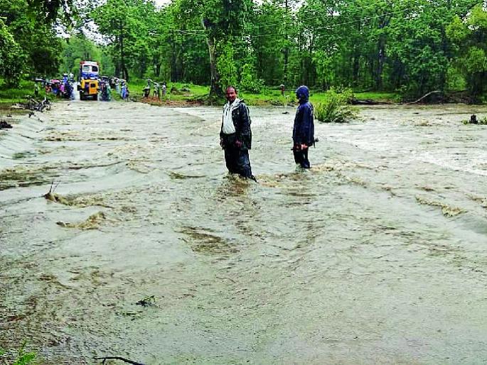 लोकमत न्यूज नेटवर्कगडचिरोली : जिल्ह्यात आता पावसाचा जोर वाढला असून गेल्या २४ तासात गडचिरोली, धानोरा, चामोर्शी, सिरोंचा, अहेरी या पाच तालुक्यांमध्ये अतिवृष्टी झाली आहे. त्यामुळे नदी, नाल्यांना पूर येऊन काही प्रमाणात जनजीवन विस्कळीत झाले.एटापल्ली : तालुक्यातील वासामुंडी मार्गावरील मरकल नाल्यावरील पुलावर पाणी चढल्याने जीव धोक्यात घालून या मार्गाने जाणारे नागरिक, वाहन चालक पुलावरून प्रवास करीत होते. एटापल्लीपासून एक किमी अंतरावर डुम्मी नाला आहे. या नाल्यावरील पुलाची उंची कमी आहे. त्यामुळे डुम्मी व जवेली या गावांचा तालुका मुख्यालयापासून संपर्क तुटू शकतो. या पुलाची उंची वाढविण्याची मागणी होत असतानाही याकडे दुर्लक्ष केले जात आहे. पुलाजवळील डांबरी रस्त्याचा काही भाग खचला आहे. सततच्या पावसामुळे दरवर्षी हा भाग खचण्याचे प्रमाण वाढत चालले आहे. सध्या कशीबशी एसटी जाते. पुन्हा डांबरी भाग खचल्यास वाहन जाणे कठीण होणार आहे.अहेरी : पावसामुळे अहेरी आगारातून सुटणाऱ्या एटापल्ली-जारावंडी, सिरोंचा-झिंगानूर, सिरोंचा-टेकडा या मार्गावरील बसफेऱ्या बंद ठेवण्यात आल्या होत्या.चामोर्शी : तालुक्यातील कानोली येथील मोहन मारोती देवतळे यांच्या घराची भिंत पावसामुळे ८ जुलै रोजी कोसळली. यावेळी देवतळे कुटुंब घरातच झोपले होते. सुदैवाने कोणालाही इजा झाली नाही. यामुळे १० हजार रूपयांचे नुकसान झाले. मात्र अजूनपर्यंत पंचनामा केला नसल्याची माहिती देवतळे यांनी दिली.विजेअभावी भामरागडातील जनजीवन ठप्पभामरागड तालुक्यात मागील चार दिवसांपासून सतत अतिवृष्टी सुरू आहे. शनिवारी भामरागड येथील वीज पुरवठा खंडीत झाला तेव्हापासून मंगळवारी रात्रीपर्यंत वीज पुरवठा सुरळीत झाला नव्हता. तीन दिवसांपासून सातत्याने वीज पुरवठा खंडीत असल्याने सर्वच कार्यालयांमधील बॅटऱ्या पूर्णपणे डिस्चार्ज झाल्या. विजेअभावी बँक आॅफ महाराष्ट्रमधील आर्थिक व्यवहार पूर्णपणे ठप्प पडले होते. शासकीय कार्यालयातीलही संगणक बंद पडल्याने शासकीय कर्मचारी केवळ कार्यालय उघडून रिकामे बसले होते. विजेअभावी पेट्रोलपंप बंद आहे. शेतीची कामे सुरू झाली आहेत. त्यामुळे काही वाहनधारक ६५ किमी अंतरावर असलेल्या आलापल्ली येथून पेट्रोल-डिेझेल आणत आहेत. बीएसएनएल सेवाही ठप्प पडली होती.भामरागडपासून चार किमी अंतरावर असलेल्या कुमरगुडा तसेच १२ किमी अंतरावर असलेल्या ताडगाव नाल्यावरील पुलावर मंगळवारी दुपारी पाणी चढले. त्यामुळे या मार्गावरील वाहतूक ठप्प झाली होती. त्यामुळे वाहनांची मोठी रांग लागली होती. काही वाहनधारक मात्र पाणी असतानाही पुलावरून वाहन टाकत होते. पाऊस ओसरल्याने मंगळवारी रात्री उशीरापर्यंत पुलावरील पाणी कमी होण्याच