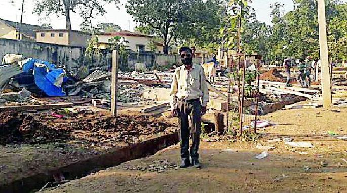 लोकमत न्यूज नेटवर्कएटापल्ली : एटापल्ली पंचायत समिती समोरचे अतिक्रमण काढल्यानंतर पुन्हा या जागेवर अतिक्रमण होऊ नये, यासाठी सोमवारपासून तत्काळ संरक्षण भिंत बांधण्याच्या कामाला सुरूवात झाली आहे. यासाठी खोदकामही करण्यात आले आहे.पंचायत समितीच्या परिसरात काही नागरिकांनी अतिक्रमण करून दुकाने थाटली होती. सदर जागा पंचायत समितीची असली तरी मागील अनेक वर्षांपासून दुकाने होती. त्याचबरोबर काही नागरिकांनी पक्के बांधकामही केले होते. त्यामुळे सदर जागा आपल्याच मालकीची असल्याचे दुकानदार सांगत होते. अतिक्रमण हटवितेवेळी सुरूवातीला दुकानदारांनी पंचायत समिती प्रशासनावर दबाव आणण्याचा प्रयत्न केला. मात्र या दबावाला न जुमानता पंचायत समितीचे संवर्ग विकास अधिकारी किशोर गज्जलवार यांनी रविवारी अतिक्रमण हटवियाची कारवाई केली.अतिक्रमण हटवून ती जागा मोकळी केल्यानंतर त्या जागेवर पुन्हा अतिक्रमण वाढते हा आजपर्यंतचा अनुभव आहे.हे लक्षात घेऊन अतिक्रमण काढल्याच्या अगदी दुसऱ्याच दिवशी पंचायत समिती प्रशासनाने संरक्षण भिंत बांधण्याच्या कामाला सुरूवात केली. यासाठी खोदकाम केले जात आहे. लवकरच बांधकामालाही सुरूवात होणार आहे.युवकांवर बेरोजगारीचे संकटपंचायत समितीमध्ये विविध कामांसाठी ग्रामीण भागातील नागरिक येत होते. त्यामुळे पंचायत समिती परिसरात हॉटेल, पानठेले, चहाचे दुकान व इतर किरकोळ दुकाने थाटण्यात आली होती. या दुकानातून मिळणाºया मिळकतीतून प्रपंच भागत होता. मात्र प्रशासनाने अतिक्रमण हटविल्याने हे दुकानदार बेरोजगार झाले आहेत. त्यांना पुन्हा व्यवसायासाठी नवीन जागा किंवा काम शोधावे लागणार आहे.