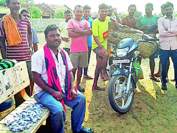 लॉकडाऊनमुळे सध्या गावांतील भाजीबाजार बंद आहे. त्यामुळे अनेकांनी दुचाकीवरून गावांमध्ये घरोघरी जाऊन भाजी विकणे सुरू केले आहे. मुलचेरा तालुक्यातील श्रीरामपूर येथील सचिन बक्त हा इसमही दुचाकीवरून एटापल्ली तालुक्यातील गावांमध्ये भाजी विक्रीचा व्यवसाय करतो. पण बुधवारी जवेली येथे घरोघरी भाजी विक्री करताना तो लपून-छपून खर्राही विकत असल्याचे पोलीस पाटील मासू उसेंडी यांच्या निदर्शनास आले.