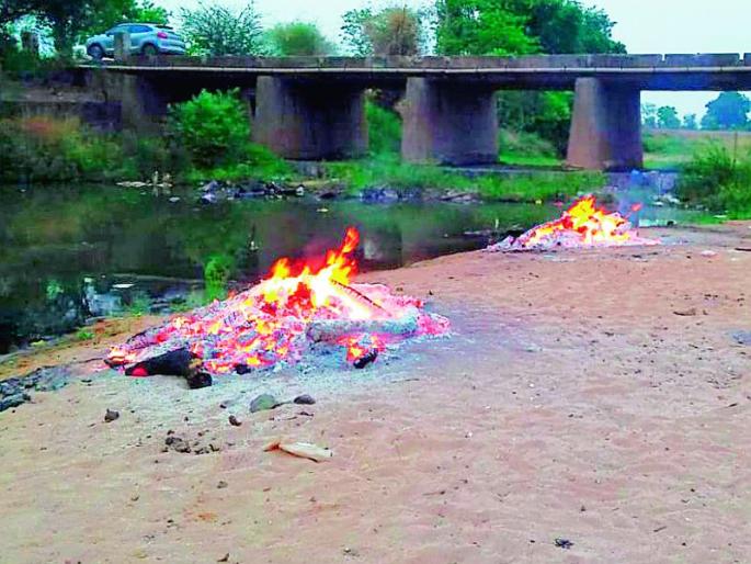 लाेकमत न्यूज नेटवर्कगडचिरोली : गेल्या २४ तासात कोरोनाने बळी घेतलेल्या २० पैकी १४ जणांच्या मृतदेहांवर मंगळवारी गडचिरोलीच्या स्मशानभूमीत अग्निसंस्कार करण्यात आले. पहिल्यांदाच एकावेळी एवढ्या प्रेतांवर अंतिम संस्कार करण्याची वेळ नगर परिषदेकडून नियुक्त संबंधित कर्मचाऱ्यांवर आली. यासाठी स्मशानभूमीत जागा कमी पडल्याने कठाणी नदीच्या दोन्ही तिरांवर योग्य जागा मिळेल तिथे सरण रचावे लागले. जिल्ह्यात कोरोनाने १५७ जणांचा बळी घेतला आहे. मंगळवारी नोंद केलेल्या २० मृत्यूंपैकी दहा गडचिरोली जिल्ह्यातील, सात चंद्रपूर जिल्ह्यातील तर यवतमाळ, नागपूर आणि भंडारा जिल्ह्यातील प्रत्येकी एका जणाचा समावेश आहे. त्यांच्यावर गडचिरोलीत अंत्यसंस्कार केले जात आहे.गडचिरोली जिल्ह्यातील मृतांमध्ये शहरातील गोकुलनगरातील ६४ वर्षीय महिला, कलेक्टर कॉलनीतील ७८ वर्षीय महिला, आरमोरीतील ५२ वर्षीय पुरुष, विसोरा, ता.देसाईगंज येथील ४० वर्षीय पुरुष, देसाईगंजमधील ५७ वर्षीय महिला, विहीरगाव येथील पुरुष, एक महिला, एकलापूर येथील ५७ वर्षीय पुरुष, कुरखेडा येथील ६०वर्षीय पुरुष, नवेगाव कॉम्प्लेक्स येथील ६२ वर्षीय पुरुषाचा समावेश आहे. चंद्रपूर जिल्ह्यातील मृतांमध्ये ६४ व ६५ वर्षीय पुरुष, ५५ वर्षीय पुरुष, ४० वर्षीय पुरुष, २७ वर्षीय आणि ५८ वर्षीय पुरुषाचा समावेश आहे. यवतमाळ जिल्ह्यातील ५५ वर्षीय महिला, नागपूरची ५० वर्षीय पुरुष आणि भंडारा जिल्ह्यातील ६० वर्षीय महिलेचा समावेश आहे.