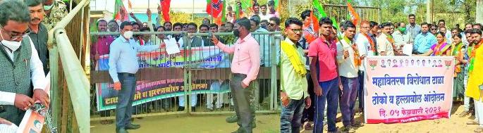 काेराेनाकाळातील वीजबिल माफ करण्याचे आश्वासन राज्य सरकारने दिले हाेते, मात्र वीजबिल माफ केले नाही. तसेच महावितरणतर्फे थकीत ग्राहकांचा वीजपुरवठा खंडित करण्याचा इशारा दिला जात आहे. याविराेधात जिल्हाभरातील महावितरणच्या कार्यालयांसमाेर भाजप पदाधिकाऱ्यांनी निदर्शने केली. तर काही कार्यालयांना कुलूपही ठाेकण्यात आले. तसेच वीज विभागाच्या अधिकाऱ्यांमार्फत शासनाला निवेदन पाठविण्यात आले.