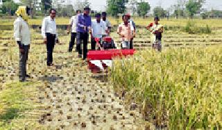 यंत्राने कापले जात आहे धान