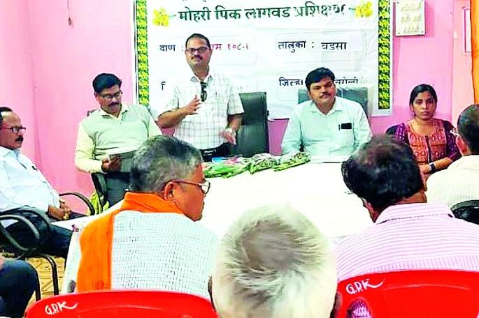 रबी तेलबिया पिकांमध्ये मोहरी एक महत्त्वाचे, कमी खर्चाचे व जास्त फायद्याचे पीक आहे. मोहरी पिकाला १० ते ३० अंश सेल्सिअस तापमानाची गरज असते. ऑक्टोबर महिन्याच्या शेवटपर्यंत या पिकाची लागवड झाल्यास कमीत कमी पाण्यात पाच ते सात क्विंटल उत्पादन मिळते. मोहरीमध्ये जवळपास ४० टक्के तेल असल्याने खाद्यतेलाची गरज भागविता येणार आहे. मोहरी बुरशीविरोधक असल्याने लोणची टिकविण्याकरिता व चवीसाठी लोणच्यामध्ये मोहरीची पूड टाकली जाते. या पिकाला ५०५० रु. प्रति क्विंटलप्रमाणे आधारभूत किंमत मिळत असल्याने आर्थिकदृष्ट्या फायद्याचे ठरणार आहे. शेतकऱ्यांनी या पिकाची लागवड करावी, असे आवाहन तालुका कृषी अधिकारी गेडाम यांनी केले.
