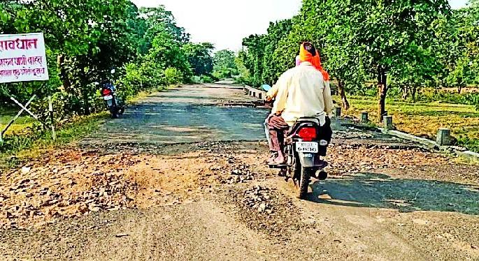लोकमत न्यूज नेटवर्कगडचिरोली : अतिदुर्गम व दुर्गम भागातील रस्त्याची दुर्दशा झाली, यासाठी अनेक कारणे जबाबदार आहेत. मात्र शहरी भागालगतचे व तालुका मुख्यालयाजवळून जाणारे मार्ग उखडले असल्याने रस्ता विकासाचे नियोजन फेल असल्याचे दिसून येत आहे. मक्केपल्ली-हळदवाही या रस्त्याची दुर्दशा पाहिल्यास याचे प्रत्यय येते.चामोर्शी-भाडभिडी-हळदवादी-मक्केपल्ली त्यानंतर विकासपल्ली व बाजूने घोटसाठी मार्ग जातो. चामोर्शी तालुक्यातील अनेक गावातील या मार्गाने दररोज आवागमन करतात. घोट हे मध्यवर्ती ठिकाण असल्याने नागरिक सदर मार्गाचा मोठ्या प्रमाणात वापर करतात. त्यामुळे या मार्गावर दिवसभर दुचाकी व चारचाकी वाहनांची वर्दळ राहते. मात्र गेल्या काही दिवसांपासून सदर मार्गावर हळदवादी व मक्केपल्लीदरम्यान एक पूल आहे. हळदवाही गावानजीक असलेल्या या पुलाच्या दोन्ही बाजूकडील डांबरीकरण पूर्णत: उखडले आहे. गिट्टी बाहेर आली असल्याने अनेकांची वाहने पंक्चर होत आहेत. परिणामी या भागातील वाहनधारक त्रस्त झाले आहेत.मक्केपल्लीसमोरील काही भागांमध्ये अधूनमधून मोठमोठे खड्डे निर्माण झाले आहेत. यावर्षीच्या पावसाळ्यात जोरदार पाऊस झाल्याने मार्गाची वाट लागली. अतिवृष्टीमुळे हळदवाहीनजीकच्या पुलाची व मार्गाची दुरवस्था झाली आहे. त्यामुळे प्रशासनाने रस्ता विकासासाठी कृतीशील नियोजन करावे व दुरूस्तीचे काम दर्जेदार करावे, अशी मागणी हळदवाही, मक्केपल्ली परिसरातील नागरिकांनी केली आहे. घोट परिसरातील बऱ्याच अंतर्गत रस्त्यांची दुरवस्था झाली आहे.