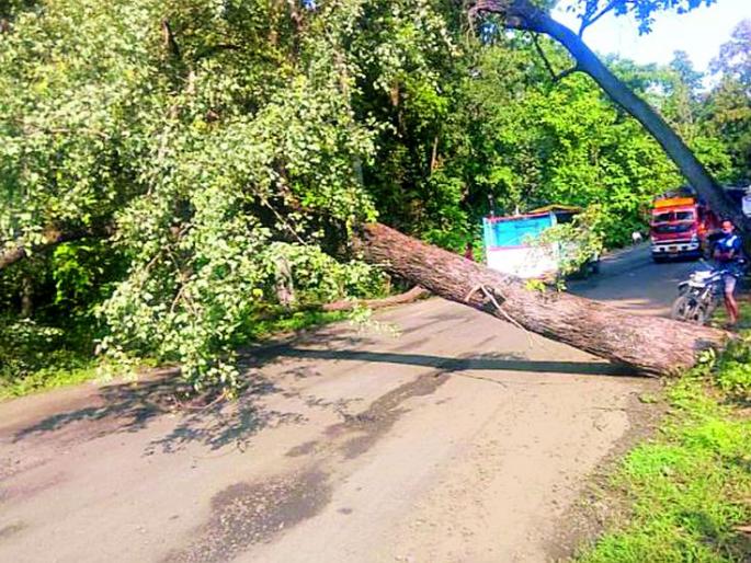 झाडाने अडविला राष्ट्रीय महामार्ग