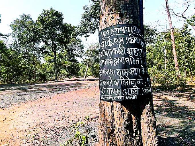 तालुक्यातील सुरजागड पहाडाकडे जाणाऱ्या मार्गाच्या बाजुला नक्षल्यांनी ठिकठिकाणी बॅनर लावले आहेत. त्यामुळे या परिसरात भितीचे वातावरण निर्माण झाले आहे. काळ्या रंगाचे बॅनर झाडांना गोल स्वरूपात बांधण्यात आले आहे.