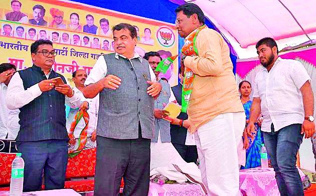 लोकमत न्यूज नेटवर्कगडचिरोली : केंद्रीय भूपृष्ठ वाहतूक, जहाजबांधणी, जलसंधारण व गंगाशुध्दीकरण मंत्री नितीन गडकरी हे गोंडवाना विद्यापीठाच्या पाचव्या दीक्षांत समारंभानिमित्त गडचिरोली शहराच्या दौऱ्यावर आले असता त्यांनी भाजपचे जिल्हाध्यक्ष खा. अशोक नेते यांच्या जनसंपर्क कार्यालयाला भेट देऊन तेथे पदाधिकारी व कार्यकर्त्यांशी संवाद साधला. यावेळी राष्ट्रवादी काँग्रेसच्या दोन पदाधिकाऱ्यांनी भाजपात प्रवेश केला.डेवीड बोगी व फैजान खान पठाण या दोन पदाधिकाऱ्यांचे ना. नितीन गडकरी यांनी पक्षाचा दुपट्टा देऊन त्यांचे स्वागत केले. याप्रसंगी आदिवासी विकास, वने राज्यमंत्री तथा जिल्ह्याचे पालकमंत्री अम्ब्रीशराव आत्राम, खासदार अशोक नेते, जि.प. अध्यक्ष योगीता भांडेकर, आमदार डॉ. देवराव होळी, आमदार कृष्णा गजबे, बाबुराव कोहळे, अरविंद पोरेड्डीवार, नगराध्यक्ष योगीता पिपरे, शालू दंडवते, रवींद्र ओल्लालवार, प्रशांत वाघरे आदी उपस्थित होते.