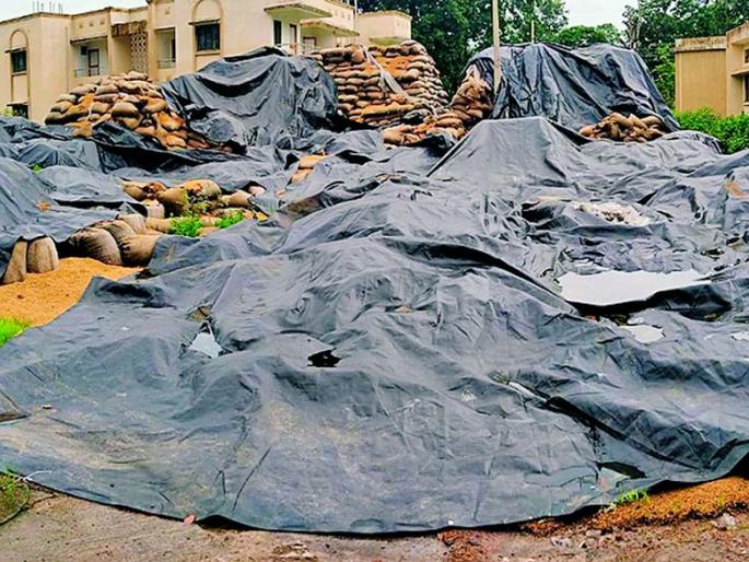 ठळक मुद्देदुर्लक्षितपणाचा परिणाम : गोदामाअभावी मोकळ्या जागेत ठेवले; तुटपुंज्या ताडपत्र्या