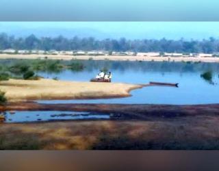 विकासाच्या केवळ बाता! नागरिकांना नदीच्या पाण्यातून वाट काढतच पाेहाेचावे लागते गावात