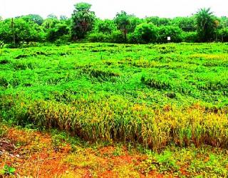 वादळाने धानाचे पीक कोसळले