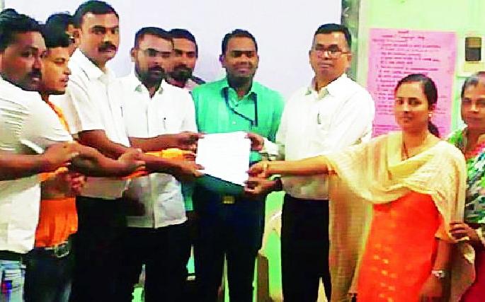लोकमत न्यूज नेटवर्कआरमोरी : परिभाषित अंशदायी निवृत्ती वेतन योजना लागू असलेल्या शिक्षकांना सातव्या वेतन आयोगाच्या ३६ महिन्याच्या थकबाकीचा पहिला हप्ता तत्काळ अदा करावा, यासह इतर मागण्यांचे निवेदन महाराष्ट्र राज्य जुनी पेंशन हक्क संघटनेच्या पदाधिकाऱ्यांनी आरमोरीचे गटशिक्षणाधिकारी दिनकर नरोटे यांच्याकडे सादर केले आहे.निवेदनात म्हटले आहे की, १ नोव्हेंबर २००५ व त्यानंतर नियुक्त प्राथमिक शिक्षकांच्या अंशदायी परिभाषित निवृत्ती वेतन अंतर्गत झालेल्या कपातीच्या हिशोबाचे वार्षिक विवरण द्यावे. जानेवारी ते जूनच्या वेतनातील थकबाकी अदा करावी. शिक्षकांचे वेतन प्रत्येक महिन्याच्या ५ तारखेच्या आत करणे सक्तीचे आहे. मात्र ५ तारखेच्या आत कधीच वेतन होत नाही. कधीकधी तांत्रिक बाबींमुळे वेतन होण्यास एक महिन्याचा विलंब होतो. कर्जाचे हप्ते थकल्याने अतिरिक्त व्याज द्यावे लागते. त्यामुळे प्रत्येक महिन्याच्या ५ तारखेच्या आत वेतन होईल, यासाठी गटशिक्षणाधिकाºयांनी लक्ष घालावे आदी मागण्यांचे निवेदन गटशिक्षणाधिकाºयांना सादर केले.या समस्यांवर त्यांच्यासोबत चर्चा केली. आपल्यास्तरावरील समस्या तत्काळ मार्गी लावल्या जातील. वरिष्ठ स्तरावरील समस्या सोडविण्यासाठी पाठपुरावा केला जाईल, असे आश्वासन गटशिक्षणाधिकारी यांनी दिले.निवेदन देतेवेळी संघटनेचे जिल्हाध्यक्ष गुरूदेव नवघडे, जिल्हा सचिव बापू मुनघाटे, तालुकाध्यक्ष प्रशांत ठेंगरे, सचिव अशोक तागडे, निकेश बन्सोड, सदाशिव कुमरे, विश्वनाथ सोनटक्के, प्रदीप सिडाम, उमेश मसराम, सुनील पनकंटीवार, देवव्रत रामटेके, दुर्गादास कापकर, अतुल वाकळे, गणेश चौधरी, किशोर मेश्राम, चरणदास वटी, किशोर कुमरे, दिलीप घोडमारे, गोवर्धन शेंडे, चंद्रशेखर जांभुळे, अंजिरा भालाई, अतुल डोंगरे, शीतल चापले, ममीता कुळमेथे, प्रीती कुंभारे, सुषमा रामटेके यांच्यासह जुनी पेंशन हक्क संघटनेचे पदाधिकारी उपस्थित होते.