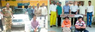 तीन आरोपींना अटक : देसाईगंज, चामोर्शी, घोट पोलिसांची कारवाईचामोर्शी/देसाईगंज/घोट : दारूची अवैध विक्री होत असल्याची गुप्त माहिती मिळाल्याच्या आधारे देसाईगंज, चामोर्शी व घोट पोलिसांनी गुरूवारी व शुक्रवारी धाड टाकून वाहनासहीत ४ लाख २४ हजार रूपयांचा अवैध दारूसाठा पकडला. सिल्वर रंगाचे चारचाकी वाहन दारू भरून भेंडाळा मार्गे जयरामपूरकडे जात असल्याची गोपनीय माहिती चामोर्शी पोलिसांना मिळाली. या माहितीच्या आधारे चामोर्शी पोलीस ठाण्याचे पोलीस हवालदार दुलाल मंडल यांनी आपल्या पोलीस कर्मचाऱ्यांसह शुक्रवारी सायंकाळच्या सुमारास भेंडाळा मार्गावर गस्त घातली. दरम्यान गणपूर गावाजवळ भेंडाळा मार्गाने एमएच-३०-एल-९४६५ ही कार येताना दिसली. सदर वाहनाचा पाठलाग करून जयरामपूर गावालगतच्या नाल्यावर सदर वाहनाला पोलिसांनी अडविले. वाहनचालक अजय अशोक शेंडे रा. नागपूर याला खाली उतरवून वाहनाची झडती घेतली. दरम्यान, या वाहनात १८० एमएम मापाच्या विदेशी दारूच्या ७२० सीलबंद निपा आढळून आल्या. या दारूची किंमत २ लाख १६ हजार व दीड लाख रूपयांचे वाहन असा एकूण पोलिसांनी ३ लाख ६६ हजारांचा मुद्देमाल जप्त केला. अजय अशोक शेंडे (३७) रा. मानेवाडा नागपूर याला अटक करून त्याच्यावर मुंबई दारूबंदी कायद्याच्या कलमान्वये चामोर्शी पोलीस ठाण्यात गुन्हा दाखल करण्यात आला आहे. देसाईगंज पोलीस ठाण्याचे पोलीस निरीक्षक रवींद्र पाटील यांच्या मार्गदर्शनाखाली गुन्हे प्रकटीकरण शाखेचे पोलीस उपनिरीक्षक सुहेल पठाण यांच्या पथकाने लाखांदूर येथून गडचिरोली व चंद्रपूरकडे आयात होणारी ११ हजार ४०० रूपयांची अवैध दारू जप्त केली व याप्रकरणी दोन आरोपींना अटक करून त्यांच्यावर मुंबई दारूबंदी कायद्यान्वये गुन्हा दाखल करण्यात आला आहे. पोलीस निरीक्षक रवींद्र पाटील यांनी देसाईगंज पोलीस ठाण्याचा पदभार हाती घेतल्यापासून देसाईगंज पोलिसांनी आतापर्यंत एकूण ३२ दारूविक्रेत्या आरोपींवर गुन्हे दाखल करून कारवाई केली आहे. या सर्व आरोपींकडून वाहनासहीत पोलिसांकडून ३ लाख ९७ हजार ३४७ रूपयांचा मुद्देमाल जप्त केला. देसाईगंज पोलिसांच्या धडक कारवाईमुळे देसाईगंज तालुक्यातील अवैध दारूविक्रेत्यांचे धाबे दणाणले आहे.घोट पोलिसांनी मुलचेरा तालुक्यात कालीनगर येथे निरंजन हलदर यांच्या शेतात धाड टाकून त्याच्याकडून ४१ हजार रूपये किमतीची ४१० लिटर मोहफुलाची दारू व ३६ हजार रूपये किंमतीचे सहा क्विंटल मोहफुलाचा सडवा तसेच दारू काढण्याचे साहित्य जप्त केले. त्याचेकडून एकूण ७७ हजार रूपयांचा मुद्देमाल जप्त केला. निरंजन क्रिष्णकांत हलदर (४५) याला अटक करून त्याच्यावर गुन्हा दाखल केला आहे.