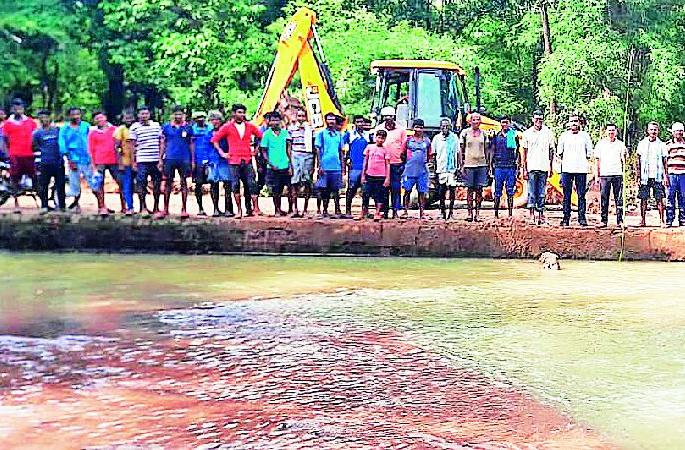 लोकमत न्यूज नेटवर्कझिंगानूर : सिरोंचा तालुक्यातील झिंगानूरकडे जाणाऱ्या मार्गावर सिरकोंडाजवळ असलेल्या नाल्याच्या पुलाच्या पाईपमध्ये मोठ्या प्रमाणात गाळ साचला होता. त्यामुळे पाणी वाहून जाण्यास अडथळा निर्माण होत असल्याने थोडाही पाऊस झाला तरी पुलावरून पाणी वाहत होते. त्यामुळे रहदारी ठप्प पडत होती. झिंगानूर उपपोलीस स्टेशनच्या कर्मचारी व अधिकाऱ्यांनी पुढाकार घेत जेसीबीच्या सहाय्याने पाईपमधील माती काढली.सिरकोंडा नाल्यावर कमी उंचीचा पूल आहे. पाईप टाकून पुलाचे बांधकाम करण्यात आले आहे. पाण्याबरोबर येणारा गाळ पाईपासमोर जमा झाला होता. काही प्रमाणात पाईप सुद्धा बुजले होते. त्यामुळे पावसाचे पाणी वाहून जाण्यास अडथळा निर्माण होऊन पुलावरून पाणी वाहण्यास सुरूवात होत होती. परिणामी झिंगानूरसह इतर गावांचा संपर्क तुटत होता. गाळ काढणे आवश्यक झाले होते. बांधकाम विभागाकडे तक्रार केली तरी बांधकाम विभागाकडून यावर वेळीच उपाययोजना होणे अशक्य होते. ही बाब झिंगानूर उपपोलीस स्टेशनचे पोलीस उपनिरीक्षक युवराज घोडके यांच्या लक्षात आली. त्यांनी एक खासगी जेसीबी भाड्याने घेतला. पाईपच्या समोर असलेली रेती व गाळ दूर करून पाण्याला मार्ग मोकळा करून दिला. या कामात झिंगानूर व परिसरातील गावकºयांनी सुद्धा मदत केली आहे. मात्र या सर्व बाबीसाठी पोलिसांचे मोठे सहकार्य लाभले आहे. नागरिकांचे संरक्षण करण्याबरोबरच त्यांच्या अडचणी दूर करण्याचे काम पोलीस करीत असल्याने पोलिसांच्या कार्याची प्रशंसा होत आहे. नाल्यातून सतत पाणी वाहत असल्याने नाल्याजवळचा रस्ता वाहून गेला. दगड बाहेर निघले होते. नागरिकांनी श्रमदान करून हा रस्ता सुद्धा दुरूस्त केला आहे.उंच पूल बांधण्याची गरजसिरकोंडा गावाच्या पलिकडे झिंगानूरसह अनेक गावे आहेत. या गावांकडे जाणारा हा प्रमुख मार्ग आहे. त्यामुळे या मार्गावरून बस, खासगी वाहने व इतर मालवाहू वाहनांची वर्दळ राहते. सिरकोंडा गावाजवळ असलेल्या नाल्यावरचे पूल कमी उंचीचे आहे. त्यामुळे थोडा मोठा पाऊस झाल्यानंतर पुलावरून पाणी वाहण्यास सुरूवात होऊन रहदारी ठप्प होते व पुढील गावांचा संपर्क तुटते. पावसाळ्यात अनेकवेळा संपर्क तुटत असल्याने या ठिकाणी उंच पूल बांधण्याची गरज आहे.