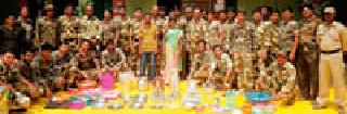 दामरंचा उपपोलीस स्टेशनचा उपक्रम : वसंत शेगम यांच्या कुटुंबाला दिले जीवनोपयोगी साहित्यजिमलगट्टा : उपपोलीस स्टेशन दामरंचा हद्दितील नैनगुड्डम येथील वसंत सोनू शेगम यांच्या राहत्या घराला २७ मार्च रोजी अचानक आग लागली. या आगीत शेगम यांचे घर जळून खाक झाल्याने त्यांचे कुटुंब उघड्यावर आले होते. दामरंचा उपपोलीस स्टेशनच्या वतीने शेगम कुटुंबाला जीवनोपयोगी साहित्य देऊन मदत केली. नैनगुडम येथील वसंत सोनू शेगम यांच्या घराला २७ मार्च रोजी अचानक आग लागली. या आगीत शेगम यांचे घर जळून खाक झाले. त्याचबरोबर कपडे, भांडी, अन्नधान्य जळाल्याने वसंत शेगम यांच्या कुटुंबासमोर जगण्याचा प्रश्न निर्माण झाला होता. शेगम यांच्या कुटुंबात त्यांची लहान पाच मुलींचा समावेश आहे. ही बाब दामरंचा पोलीस स्टेशनला माहित झाल्यानंतर जिमलगट्टाचे उपविभागीय पोलीस अधिकारी अण्णासाहेब जाधव यांच्या मार्गदर्शनात उपपोलीस स्टेशनचे प्रभारी अधिकारी सहायक पोलीस निरिक्षक विलास मोरे, पोलीस उपनिरिक्षक अनिल लवटे, अभिजीत भोसले, नागनाथ पाटील, गणेश मोरे व उपपोलीस स्टेशनमधील कर्मचाऱ्यांनी आर्थिक मदत गोळा केली. यातून कुटुंबातील सर्व सदस्यांसाठी कपडे, संसार उपयोगी भांडे, किराणा सामान खरेदी करून दिले. पोलिसांच्या या कार्याचे गावातील नागरिकांनी कौतुक केले आहे. पोलिसांची मदत बघून शेगम कुटुंबातील सदस्यांच्या चेहऱ्यावर आनंद झळकायला सुरूवात झाली. या उपक्रमातून ‘सद्रक्षणाय खलनिग्रहणाय’ हे पोलिसांचे ब्रिदवाक्य प्रत्यक्षात उतरले.