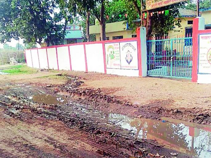 रस्त्याने आवागमन करणाऱ्या वाहनांमुळे परिसरात खड्डे पडून दुरवस्था झाली आहे. या खड्ड्यांमध्ये परिसरातील सांडपाणी जमा होऊन राहते. अनेक विद्यार्थी या खड्ड्यांमध्ये पळून जखमी झाल्याच्या घटनाही घडल्या आहेत. विद्यार्थ्यांना खेळण्यासाठी सदर परिसर सोयीचा आहे. परंतु याच ठिकाणी सांडपाणी साचून राहत असल्याने विद्यार्थ्यांसाठी धोकादायक ठरत आहे. विशेष म्हणजे यापूर्वी ग्रामसभेत तसेच तोंडी सांगून सांडपाण्याची विल्हेवाट लावण्याची मागणी करण्यात आली होती. परंतु याकडे दुर्लक्ष झाले.