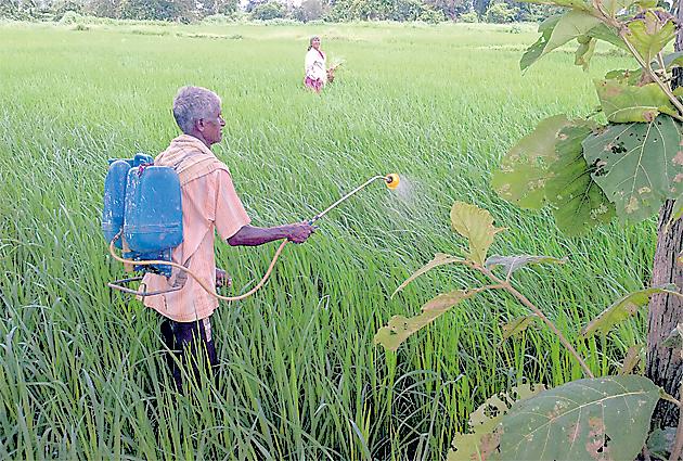 वैरागड : यंदा सरासरीपेक्षा कमी पाऊस झाल्याने तसेच लांबलेल्या खरीप हंगामामुळे धानपिकावर परिणाम झाला असून यंदा धानपिकाच्या उत्पादनात घट येणार, अशी शक्यता आहे. प्रतिकूल वातावरणामुळे सध्या वैरागड परिसरासह जिल्हाभरातील धानपिकावर खोडकिडीचा प्रादुर्भाव मोठ्या प्रमाणात झाला आहे. कीटकनाशकाची फवारणी सुरू आहे.