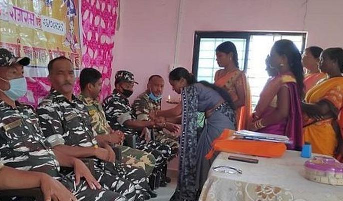 पोलीस मदत केंद्र, येलचिल येथे मुक्तिपथ गावसंघटनेतर्फे उपक्रम राबविण्यात आला. यावेळी प्रभारी अधिकारी ए. आर. इंगोले, पोलीस उपनिरीक्षक टी. आर. माने, ‘सीआरपीएफ’चे कमांडंट संजीव कुमार यांच्यासह ३० पोलीस बांधवांना १२ महिलांनी राखी बांधून परिसरातील अवैध दारूविक्री बंद करण्याची ओवाळणी मागितली.