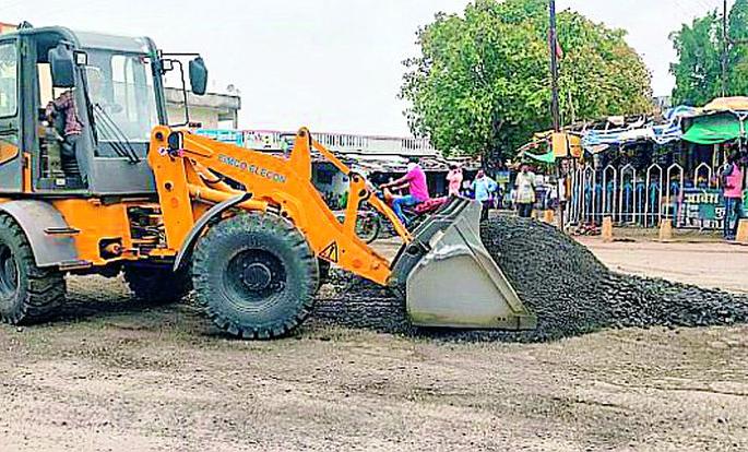लोकमत न्यूज नेटवर्कआष्टी : येथील आंबेडकर चौकात मोठमोठे खड्डे पडून दुरवस्था झाली होती. या खड्ड्यांमुळे वाहन चालविणे कठीण झाले होते. तसेच धुळीचा त्रास वाढला होता. याबाबत लोकमतने ‘आंबेडकर चौकातील खड्डे कायम’ या शीर्षकाखाली ८ जूनला वृत्त प्रकाशित केले. या वृत्ताची दखल प्रशासनाने घेतली असून गुरूवारी आंबेडकर चौकातील चारही मार्गावर पडलेले खड्डे बुजविण्यात आले.गडचिरोली जिल्ह्यातील मध्यवर्ती ठिकाण म्हणून आष्टीची ओळख आहे. येथून चंद्रपूर जिल्ह्याची सीमा जवळच आहे. अहेरी, गोंडपिपरी तसेच चामोर्शीकडे येणाऱ्या मार्गावर दिवसभर वाहनांची वर्दळ असते. आंबेडकर चौकातूनच ही वाहने वळतात. अवजड वाहनांमुळे या चौकातील रस्त्यावर मोठमोठे खड्डे पडले होते. त्यामुळे अपघाताची शक्यता बळावली होती. खड्ड्यांमुळे धुळीचा त्रासही वाढला होता. वाहन जाताच धुरळा उडून परिसरात पसरायचा. त्यामुळे नागरिकांच्या आरोग्याची समस्याही निर्माण झाली होती. काही दिवसांतच पावसाचे आगमन होणार असल्याने या चौकातील खड्ड्यांची डागडुजी करणे आवश्यक होते. त्यानुसार गुरूवारी डागडुजी करण्यात आली. त्यामुळे वाहन धारकांना आता पावसाळ्यात त्रास होणार नाही. राष्ट्रीय महामार्ग अंतर्गत चामोर्शी ते आष्टी रस्त्याचे काम सुरु असून सदर काम कोनसरीपर्यंत पोहोचले आहे.महिनाभरात आष्टी येथील आंबेडकर चौकातील पूर्ण रस्त्याचे काम होणार आहे. त्यामुळे लोकांना त्रास होऊ नये म्हणून तात्पुरती व्यवस्था करण्यासाठी सदर खड्डे बुजविण्यात आले आहे.