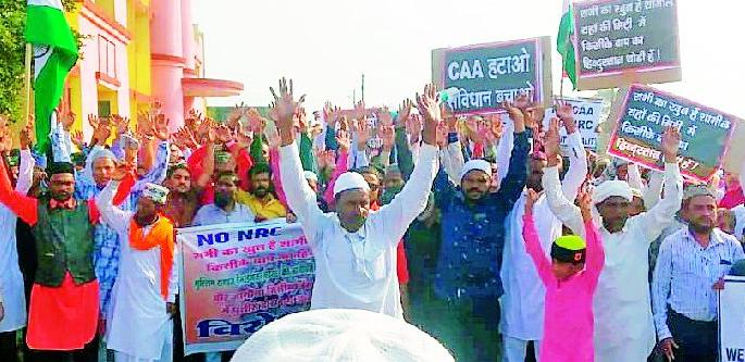 लोकमत न्यूज नेटवर्कदेसाईगंज : भारत सरकारने मंजूर केलेला नागरिकत्व सुधारणा कायदा रद्द करावा, या मागणीसाठी देसाईगंज येथे मुस्लीम समाजाच्या वतीने मोर्चा काढण्यात आला. या मोर्चात देसाईगंज येथील शेकडो मुस्लीम बांधव सहभागी झाले होते.सरकारने १० डिसेंबर २०१९ ला नागरिकत्व सुधारणा विधेयक मंजूर केले. या कायद्यानुसार ३१ डिसेंबर २०१४ पूर्वी पाकिस्तान, अफगानिस्तान, बांगलादेशमधून भारतात आलेल्या हिंदू, बौध्द, पारसी, जैन, ख्रिश्चन आदी समाजाच्या नागरिकांना नागरिकत्व दिले जाणार आहे. मात्र मुस्लीम समाजाला यातून जाणूनबुजून वगळण्यात आले आहे. नागरिकत्व सुधारणा कायदा धर्मनिरपेक्ष असायला पाहिजे होता. मात्र त्यामध्ये मुस्लीम समाजावर अन्याय झाला असल्याचे दिसून येत आहे. सदर बाब घटनाबाह्य आहे. त्यामुळे नागरी संशोधन बिल मागे घेण्यात यावा, या मागणीसाठी मोर्चा काढण्यात आला. मोर्चात शेकडो मुस्लीम बांधव सहभागी झाले होते. अहेले सुन्नत पल्द जमात देसाईगंज या संघटनेच्या नेतृत्वात मोर्चा निघाला. मोर्चात संघटनेचे अध्यक्ष सय्यद आफिद अली तुराम अली, हाजी गणी, आरीफ पटेल, आरीफ खानानी, खादर कुरेशी, नवेद खान, मौलाना नजरूल बारी, सिकंदर ताजी, जावेद कुरेशी, मकसूद खान, मौलाना कफील नुरी आदी सहभागी झाले होते. मोर्चा उपविभागीय कार्यालयात पोहोचल्यानंतर उपविभागीय अधिकारी यांच्या मार्फत राष्ट्रपतींना निवेदन पाठविण्यात आले. कायदा मागे न घेतल्यास तीव्र आंदोलन केले जाईल, असा इशारा दिला आहे.अहेरीत निघाला मोर्चानागरी संशोधन बिल रद्द करावा, यासाठी मुस्लीम समाजाच्या वतीने अहेरी येथे मोर्चा काढण्यात आला. मस्जिद चौक ते उपविभागीय अधिकारी कार्यालयापर्यंत मोर्चा काढून उपविभागीय अधिकारी राहूल गुप्ता यांच्या मार्फत राज्यपालांना निवेदन दिले. एनआरसी व नागरी संशोधन बिल रद्द करावे, हे दोन्ही बिल मुस्लीम समाजावर अन्याय करणारे असल्याचे म्हटले आहे. बिल रद्द न झाल्यास आंदोलनाचा इशारा दिला आहे.