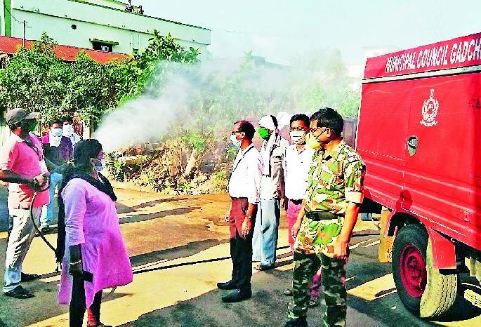 सायंकाळी ४.३० वाजताच्या सुमारास नगर परिषदेच्या वाहनाने गांधी वार्डमधील परिसर सोडियम हायपोक्लोराईडची फवारणी करून तो परिसर निर्जंतूक करण्यात आला. त्यानंतर तो परिसर प्रतिबंधित करण्यात आला. यावेळी तहसीलदार महेंद्र गणवीर, ठाणेदार प्रदीप चौगावकर, न.प.मुख्याधिकारी संजीव ओहोळ, पं.स.च्या गटविकास अधिकारी सुनिता मरसकोल्हे, तालुका आरोग्य अधिकारी डॉ.सुनील मडावी आदी अधिकारीगण हजर होते.