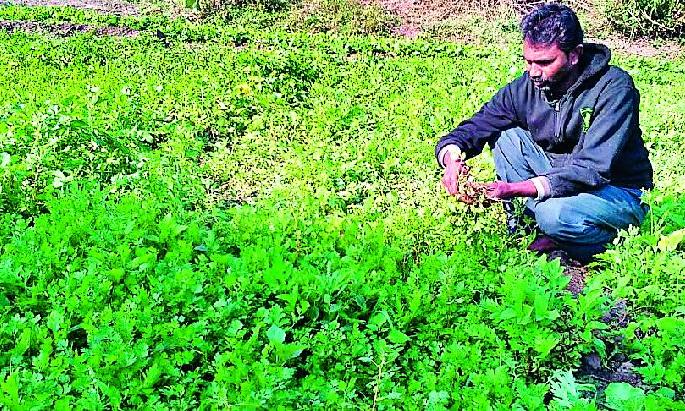 साधारणत: नोव्हेंबर- डिसेंबर महिन्यात मिरची, वांगी, मेथी, पालक, कोथिंबीर, मूळा, गाजर या भाजीपाला पिकाची लागवड मोठ्या प्रमाणात केली जाते. ही भाजीपाला पिके ऐन बहरात असताना कडाक्याची थंडी सध्या पडत असल्याने पिकांची वाढ खुंटली आहे.