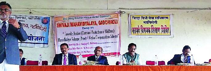 जिल्हा विधीसेवा प्राधिकरण व राष्ट्रीय सेवा योजना तसेच सांस्कृतिक विभागाच्या संयुक्त विद्यमाने स्थानिक शिवाजी महाविद्यालयात बुधवारी कायदेविषयक शिबिर घेण्यात आले. यावेळी प्रमुख वक्ते म्हणून ते बोलत होते. यावेळी मंचावर न्यायाधीश बी.एम.पाटील, विधी स्वयंसेवक वर्षा मनवर, जिल्हा विधी सेवा प्राधिकरणाचे सचिव डी.जी.कांबळे, प्राचार्य डॉ.बी.एस.चिकटे आदी उपस्थित होते. यावेळी कांबळे यांनी मुलांची काळजी व संरक्षण कायदा, नवीन मनोधैर्य योजना, पिडीतांसाठीची नुकसानभरपाई योजना, ग्राहक संरक्षण कायदा आदीबाबतची माहिती दिली.
