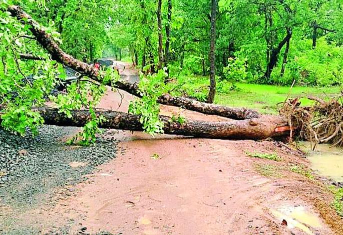 छत्तीसगड राज्यातून येणारी वाहने याच मार्गाने येतात. त्यामुळे वाहनधारकांना या मार्गाने ये-जा करताना कसरत करावी लागत आहे. कोसळलेली झाडे कायम असल्याने दुचाकी,चारचाकी तसेच अवजड वाहन धारकांना त्रास सहन करावा लागत आहे. परंतु सदर झाडे हटविण्याकडे संबंधित विभागाचे दुर्लक्ष होत आहे.